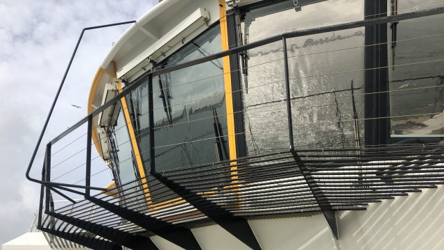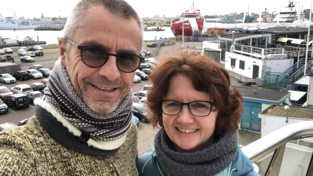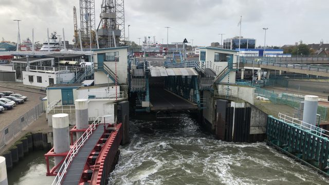 Zuvor haben wir in Den Helder zweimal den Hafen umrundet, da der Zugang zur Fähre nicht eindeutig gekennzeichnet war und uns zudem das Navi fehlgeleitet hatte. Im zweiten Anlauf klappte dann die Zufahrt zur Fähre.