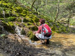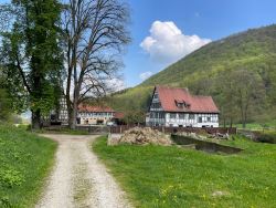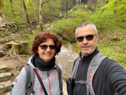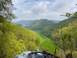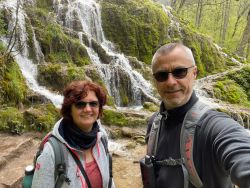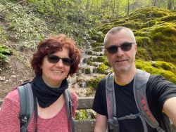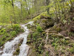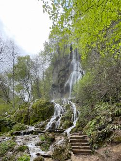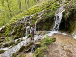 Da die heraufführenden Stufen (der Wanderweg) auch vom Wasser überspült werden, ist es ein besonders interessanter Wegabschnitt. Nach einer kurzen Rast an der Wasserfallhütte, schrauben wir uns steil den Berg herauf bis zur Abbruchkante der Rutschenfelsen. Von hier bietet sich ein weitreichender Ausblick über das schwäbische Biosphärengebiet. Dann geht es zum idyllischen Fohlenhof und danach noch zum Gütersteiner Wasserfall, der uns an einen Ort auf Madeira erinnert. Zum Schluss kommen wir noch an tollen Streuobstwiesen vorbei, deren Anblick im Mai zur Blütezeit natürlich eine ganz besonderes Augenweide ist. Die Tour ist schon absolut empfehlenswert.