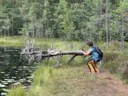 Heute wird der Miniatur-Nationalpark „Norra Kvills“ durchwandert. 5 Kilometer später ist man einmal durch. Hat was vom „Kermeter“ in der Eifel und ist einfach seit Jahren unbewirtschafteter Wald mit Steinformationen und zwei hübschen Seen. Alleine sind wir hier nicht. Es ist recht viel los. Danach geht es nach „Katthult“. Das muss einfach sein, obwohl wir uns schon vorstellen können mit wievielen Touristen wir diesen Ort teilen müssen. Die Häuser von Michel und seiner Familie sind in Privatbesitz, aber wir können alles – nach Entrichtung eines Obulus – besichtigen. In der Scheune stehen Michels (bzw. Emil‘s) Holzmännchen, die Werwolffalle gibt es noch, Alfreds Haus, die Fahnenstange, an der Michel Klein-Ida hochgezogen hat und natürlich das Wohnhaus der „Filmfamilie“. Danach geht es noch nach „Bullerbü“ (Bullerbyn) was auch sehr pittoresk anmutet mit seinen typischen, falunroten Häusern, die Astrid Lindgren inspiriert haben, die Geschichte ihrer Kindheit hier spielen zu lassen. „Bullerby“ ist der fiktive Name für das heutige Sevedstorp.