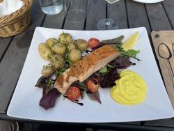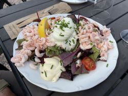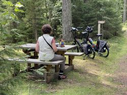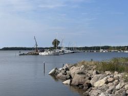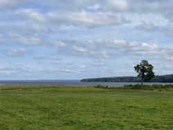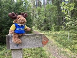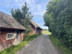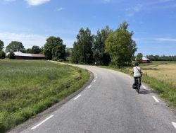 Heute radeln wir wieder eine Komoot-Runde, ausgehend vom Campingplatz. Es geht bei überraschend schönem Wetter vorbei an Feld, Wald und Wiesen und immer wieder diesen hübschen falunrot gestrichenen Häusern.