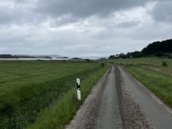 Wir radeln heute mal wieder nach einer selbst geplanten Komoot-Runde. Erst spielt das Wetter ganz gut mit und dann fängt es an zu regnen. Na ja, wir sind ja nicht aus Zucker.