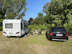 Für den zweiten Tag der Anreise hatten wir keinen konkreten Stellplatz gebucht. Erwartungsgemäß mussten wir länger suchen. Nachdem die Anfahrt von zwei Campingplätzen erfolglos blieb und beide Male in einem Rangier-Zirkus endete, entschlossen wir uns „frei“ zu stehen. Wir haben am Ende ein recht schönes Plätzchen gefunden in Mantua – auch wenn es dort, der Nähe zur Straße hin geschuldet, recht laut war.