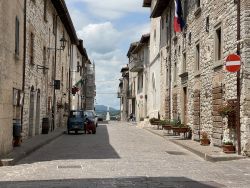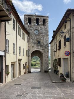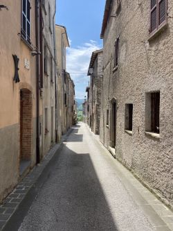 Das kleine Bergdorf „Costacciaro“ steht heute auf unserem Plan, da es vom Campingplatz zu Fuß erreichbar ist. Das Dörfchen zählt nur ca. 1100 Einwohner und besteht bereits seit dem Mittelalter. Um die Mittagszeit hält der Italiener ja ohnehin Siesta, insofern treffen wir bis auf zwei Einwohner keine Menschenseele hier an. Möglicherweise sind aber auch alle in Gubbio, wo heute die „Festa dei Ceri“ stattfindet. Wir genießen das Örtchen für uns und schlendern durch die Straßen.