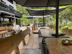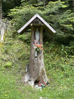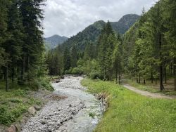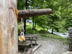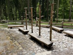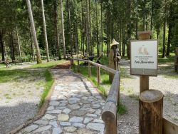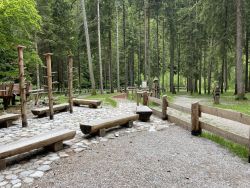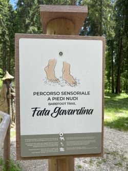 Wir spazieren heute im„Val di Consei“ auf einem sehr schönen Naturpfad. Der Rundkurs ist nur ca. 6 Kilometer lang und einfach zu begehen. Auf der Hälfte der Strecke kommen wir zum „Rifugio al Faggio“, was leider gerade für eine Stunde (Mittagspause) geschlossen hat. Wir verbringen die Wartezeit bis zur Öffnung auf dem hübsch angelegten Barfuß-Pfad.