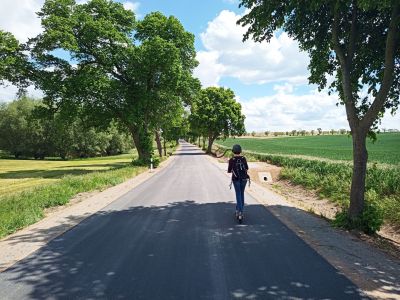 eScooter-Tour zum Schloß Basedow und auf einen Kaffee in den „alten Schafstall“.