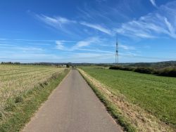 Von dort geht es durch Wald- und Wiesenlandschaften bergab in Richtung Alsenz. Der Weg folgt dann größtenteils dem Alsenztal, das durch sanfte Hügel und dichte Wälder geprägt ist.