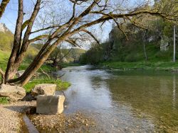 Heute sind wir mit unserem Wohnwagen weitergezogen. Von Bad Urach an die obere Donau nach Thalheim „Campinggarten Leibertingen“. Hier hat man eine tolle Aussicht bis in die Alpen.